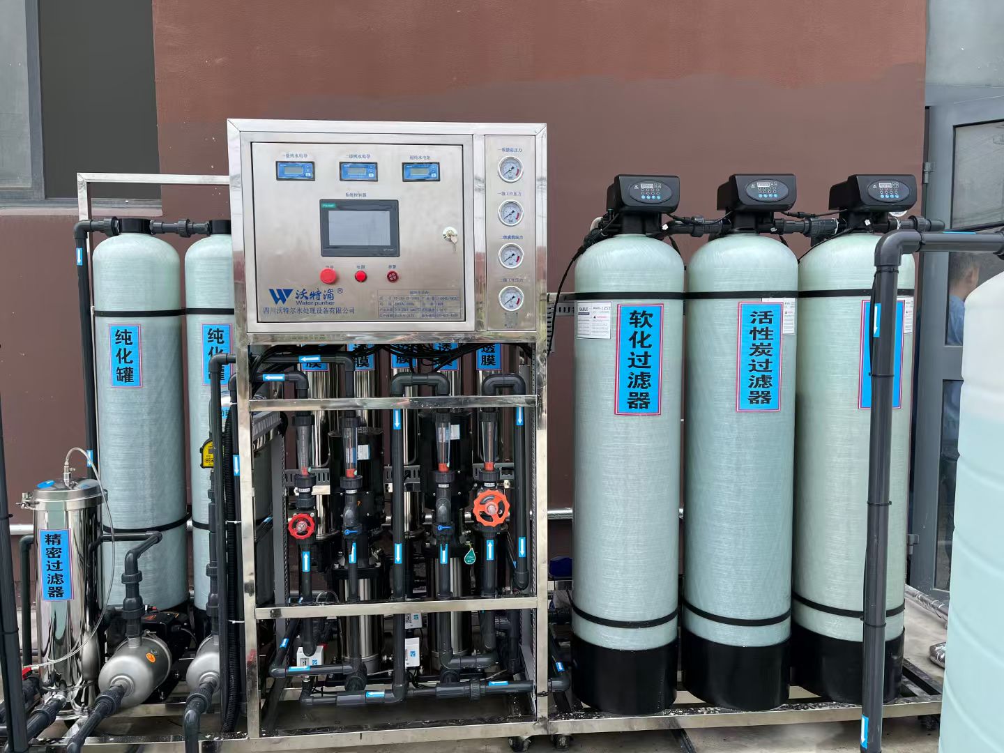 (3)純水機軟化器:去除鈣鎂離子,防止 RO 膜結垢。需配備鹽箱和自動再生功能。