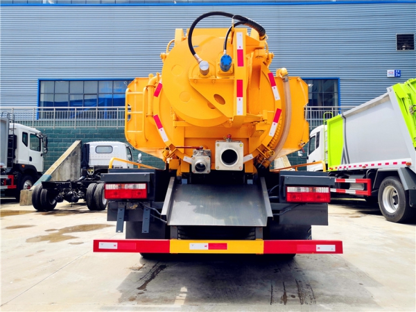 吸污部分:3.8方污罐,罐體5mmQ235優(yōu)質(zhì)碳鋼,配淄博SK-9水循環(huán)泵(北方地區(qū)可選裝真空油泵),8米吸污管一根,進氣管加過濾網(wǎng),防溢閥加高,后蓋卡扣鎖緊,前視污亮管,后尾部加裝1個力拓牌**mm、150mm的球閥均帶進出口,罐體帶舉升功能,后門帶液壓開啟。