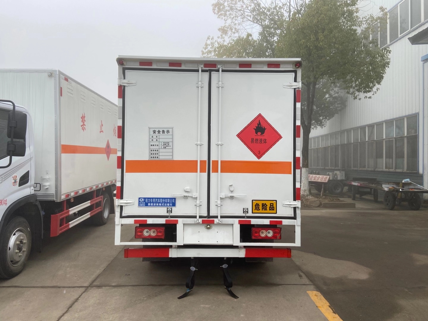 廂體頂部封閉,不可開啟.該車為危險貨物運輸車;運輸具有**容器包裝物品,類別:3。采用發動機型號與油耗申報值(L/**km):F2.8NS6B131/11.47, Q28-130E60/11.47.ABS系統**器型號/生產企業:ABS-E/威伯科汽車**系統(**)有限公司,ABS-VI·E/廣州瑞立科密汽車電子股份有限公司.側后防護材料:Q235,連接方式:側防護采用焊接連接,后防護采用焊接,后部防護斷面尺寸(mm):**×50,后部防護離地高度(mm):460.該車安裝帶有衛星定位功能的行駛記錄儀;僅采用前盤制動器和安裝ABS以及前置消聲器的底盤.采用子午線輪胎.安裝限速裝置**高車速80km/h.隨底盤選裝駕駛室及選裝右側箱體側門型式及位置。轉向輪裝備輪胎爆胎應急防護裝置。該車可選裝ETC車載裝置。